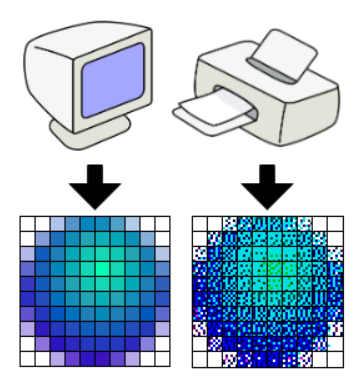 - DPI用于打印机,“每英寸墨点”。(DPI事实上也用于显示器,例如Python图片用dpi设置,显示器一点对一像素,所以对于显示器来说 1 ppi = 1 dpi。我们不讨论这种情况。)